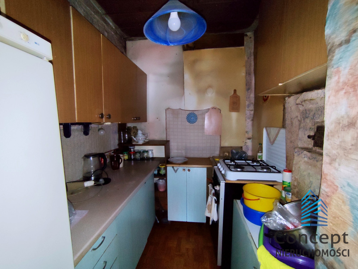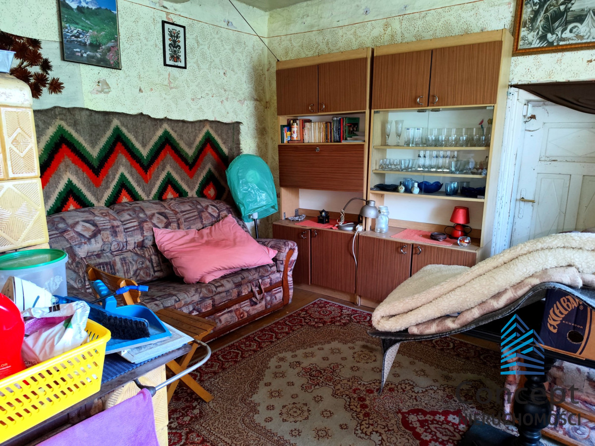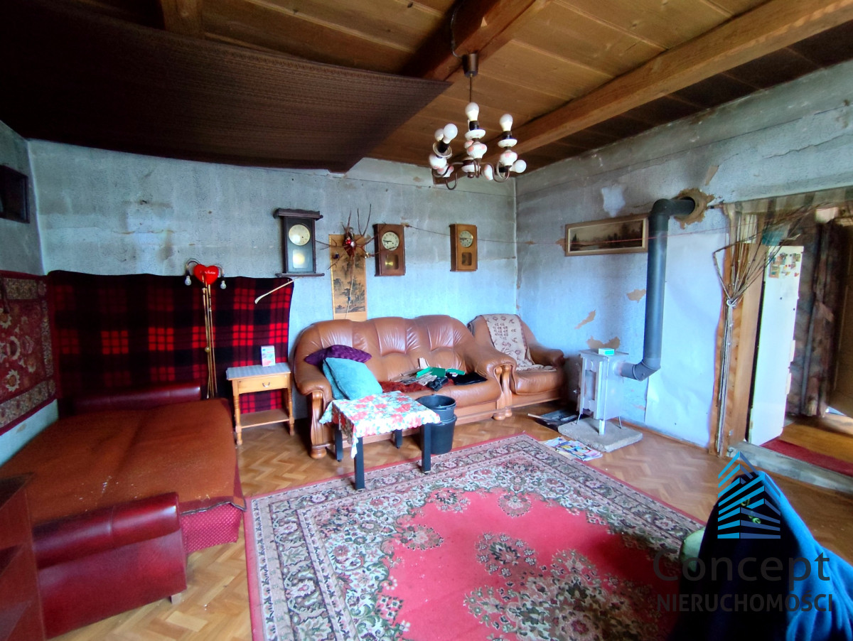 Nieruchomość wraz z budynkiem gospodarczym, ulokowana jest na działce ok. 844 m², wraz z przyłączonymi mediami: Energia elektryczna, Gaz, Woda z własnej studni, na działce znajduje się również kanalizacja. Dodatkowo, działka rolna o łącznej powierzchni ok. 1859 m². Bezpośredni zjazd z drogi asfaltowej, malownicze zielone tereny. Potencjał na rozbudowę oraz generalny remont to bardzo duży atut tej nieruchomości.
