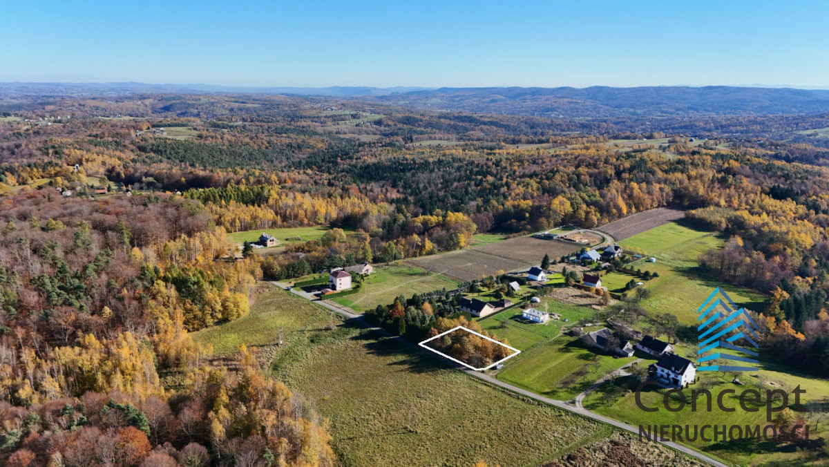 W sąsiedztwie działki znajdują się pojedyncze zabudowania jednorodzinne. Okolica piękna z licznymi lasami i pagórkami, doskonałe warunki na spacery.