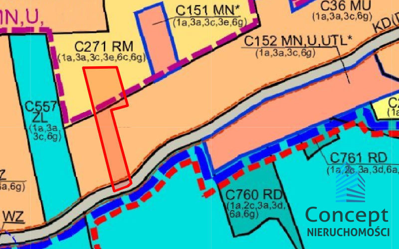- około połowa działki to tereny MU zabudowy mieszkaniowej jednorodzinnej, zagrodowej i usług niepublicznych, ta część leży bezpośrednio przy drodze asfaltowej i ma wymiary około 20 x 85 metrów, jest pokryta trawą;