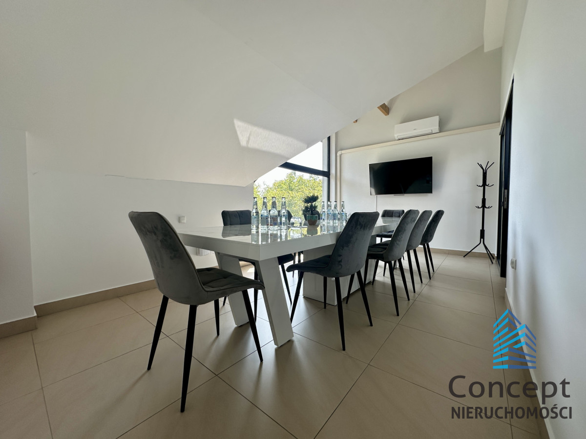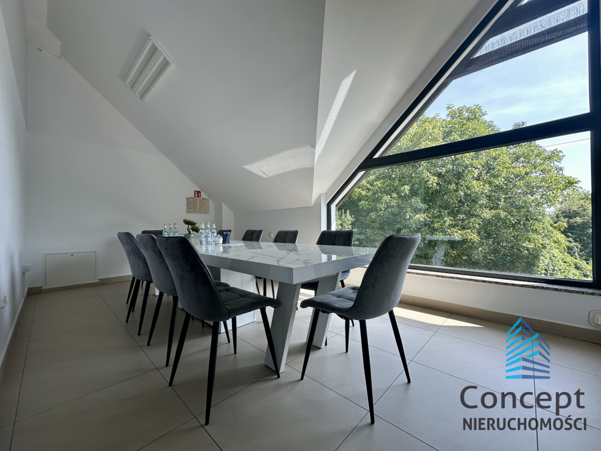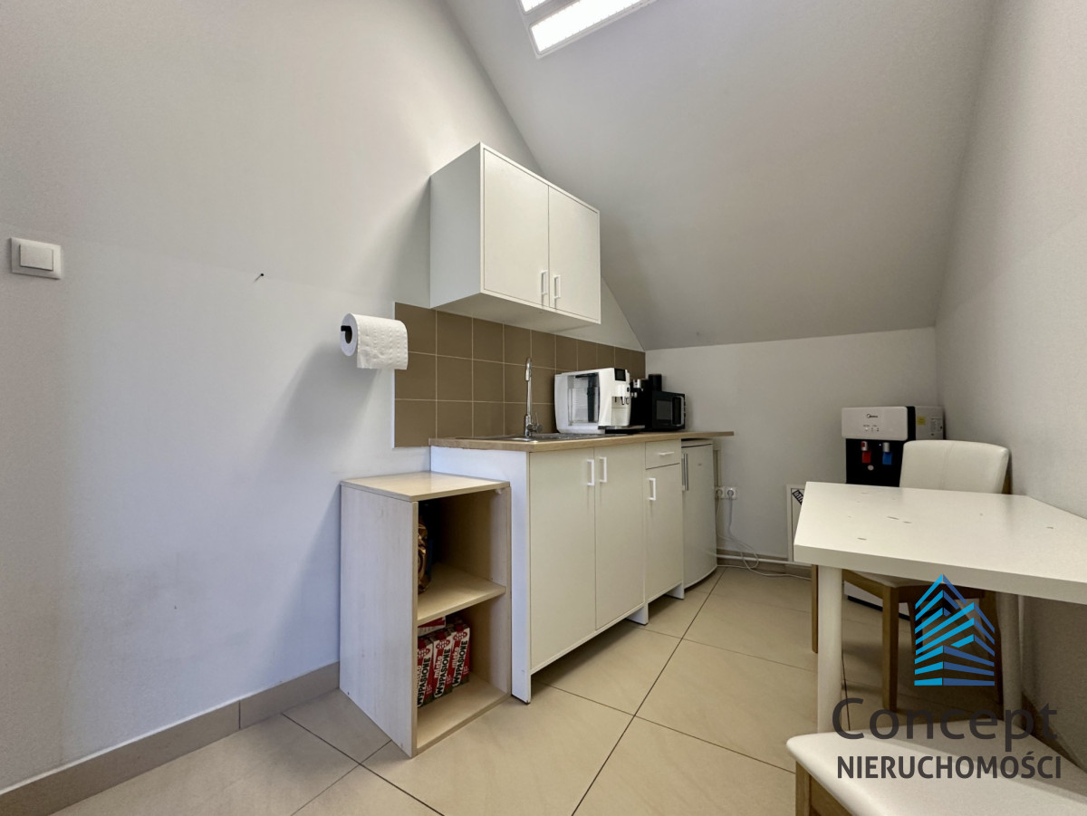 - Układ: 1 pomieszczenie z dodatkowo wydzielona sala konferencyjną + wspólna kuchnia, toaleta ok. 10 m2