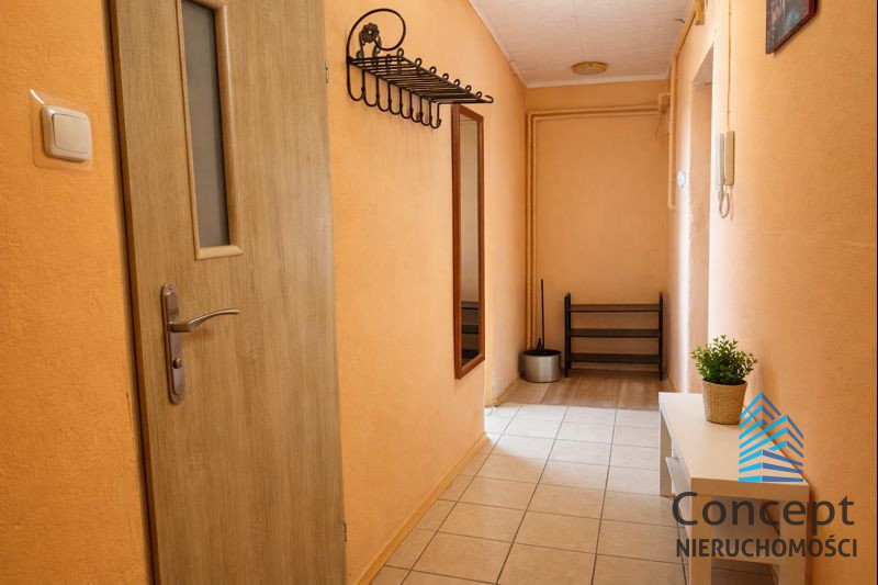 Duży przedpokój: Mieszkanie wyróżnia się dużym przedpokojem, który jest doskonałym miejscem do przechowywania różnych przedmiotów, co jest dużą zaletą w tego typu nieruchomości.
